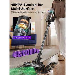 - ?Sucção potente para várias superfícies?Sucção potente de até 45 Kpa/550W, o aspirador sem fio combate facilmente poeira, detritos e pelos de animais de estimação em pisos duros, tapetes e muito mais. Transforma-se rapidamente em um aspirador portátil, com uma escova redonda integrada e uma ferramenta de fenda para limpeza versátil em casa e no seu carro