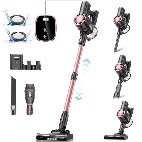 Aspirador de pó sem fio, aspirador de pó leve 6 em 1, autônomo, tempo de execução de 35 minutos, bateria recarregável de 2200 mAh, tela de LED, potentes aspiradores de pó para casa, carpete de madeira