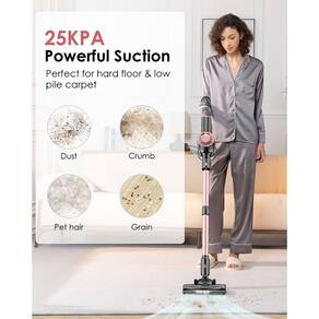- ?Sucção potente e 2 modos de sucção-?O aspirador de pó sem fio equipado com um motor atualizado pode fornecer sucção super forte para captar poeira, migalhas, comida de cachorro, areia de gato, pelos de animais de estimação e mais facilmente. O aspirador de pó com 2 modos de sucção (modo padrão e modo máximo) pode fazer você selecionar livremente o modo de sucção apropriado com base nas tarefas de limpeza para economizar energia. Um botão para alternar o modo de sucção é muito fácil e conveniente.