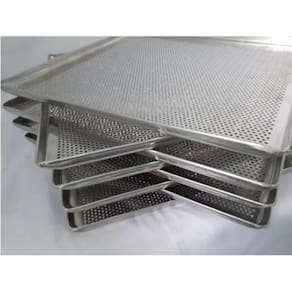 As assadeiras para fornos turbo "Fast Oven" da Progás e "Smart Basics" da Venâncio são ideais para o assamento de diversos tipos de alimentos, como pães, pães de queijo, pastéis assados, biscoitos, brioches, esfihas, croissants, entre outros. Essas assadeiras perfuradas em alumínio são fabricadas com materiais de alta qualidade, garantindo sua durabilidade e eficiência. A principal vantagem das assadeiras perfuradas em alumínio é a sua capacidade de permitir uma maior circulação do ar durante o processo de assamento. Isso resulta em uma distribuição de calor mais uniforme, facilitando o assamento dos alimentos de forma mais eficiente. Além disso, essa característica contribui para uma economia de energia elétrica ou gás, tornando o uso dessas assadeiras mais econômico.