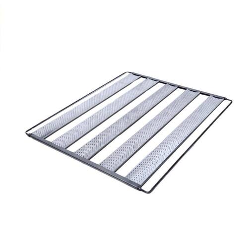 A assadeira de alumínio 58X70cm é indicada para uso comercial em padarias, indústrias, supermercados, confeitarias, restaurantes, entre outros. É adequada para a produção de vários tipos de pão, incluindo pão francês, pão de trigo, e baguete. Pode ser usada em fornos elétricos, a lenha, entre outros. Com 5 tiras perfuradas de 7cm de largura em chapa de alumínio, tem altura de 3cm, comprimento de 70cm e largura de 58cm, aumentando sua produtividade. É resistente, fácil de limpar e segue medidas estabelecidas para armários para pães e fornos turbo. As tiras são de alumínio perfurado, armação em ferro redondo e acabamentos em chapa galvanizada. As perfurações melhoram a circulação de ar quente no forno, facilitando o assamento. O alumínio é conhecido por sua alta condução de calor e durabilidade.