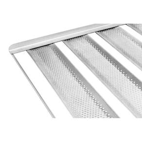 ASSADEIRA PAO FRANCES 6 TIRAS A assadeira de alumínio 58X70cm é indicada para uso comercial em padarias, indústrias, supermercados, confeitarias, restaurantes, entre outros. É adequada para a produção de vários tipos de pão, incluindo pão francês, pão de trigo, e baguete. Pode ser usada em fornos elétricos, a lenha, entre outros. Com 6 tiras perfuradas de 7cm de largura em chapa de alumínio, tem altura de 3cm, comprimento de 70cm e largura de 58cm, aumentando sua produtividade. É resistente, fácil de limpar e segue medidas estabelecidas para armários para pães e fornos turbo. As tiras são de alumínio perfurado, armação em ferro redondo e acabamentos em chapa galvanizada. As perfurações melhoram a circulação de ar quente no forno, facilitando o assamento. O alumínio é conhecido por sua alta condução de calor e durabilidade.