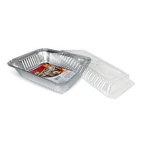 A assadeira de alumínio descartável com tampa pet é ideal para assar e transportar alimentos. É segura e permite que o alimento viaje em entregas de delivery, por exemplo, com segurança sob temperatura controlada. Muito resistente, sua tampa pet permite que o alimento esteja à mostra, trazendo apresentação diferenciada em pratos gourmet. Vai ao forno convencional ou ao microondas desde que siga as boas práticas na hora de aquecê-la. Versátil, prática e econômica, resiste a todas as variações de temperatura exigidas durante a utilização. É reciclável, desde que seja limpa adequadamente, e destinada até centro indicado para a reutilização de alumínio.