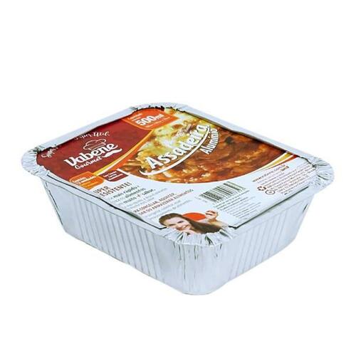 Assadeira alumínio retangular com tampa 500ml 12un vabene Descartável e reciclável. Para congelar, aquecer, assar, ou armazenar alimentos. 108mmx84mmx50mm Ean: 7898546007323