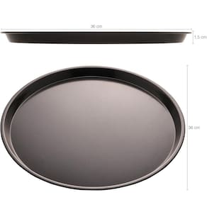 A forma de pizza Lyor possui um design elegante e funcional. Perfeitamente redonda e antiaderente, proporciona facilidade no manuseio e na limpeza, garantindo habilidade na remoção da pizza, deslizando-a suavemente sem grudar. Com 36cm de diâmetro a assadeira preta possui bordas elevadas de 1,5cm, que contém os ingredientes da pizza, e permite uma distribuição igualitária durante o cozimento. Além disso, a forma redonda é confeccionada em aço carbono de alta qualidade, que confere durabilidade e resistência, tornando-a uma escolha confiável para suas experiências culinárias, seja na cozinha da sua casa ou em pizzarias.