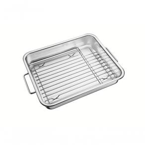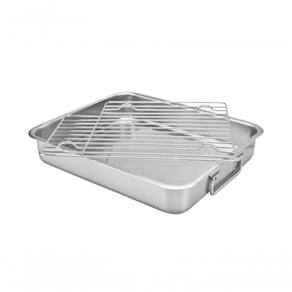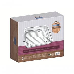 - Totalmente feita de aço inox mantêm suas características , preservando a beleza, a higiene e a durabilidade do material. - Acabamento fosco. - Possui grelha, possibilitando que a gordura fique separada do assado, garantindo cozimento uniforme e saudável. - Possui alças de aço inox que facilita o manuseio. - Pode ser lavada diariamente na máquina de lavar louças. Ean: 7891116005477