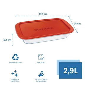 Assadeira 2,9 Litros Retangular com Tampa Marinex Nadir Figueiredo