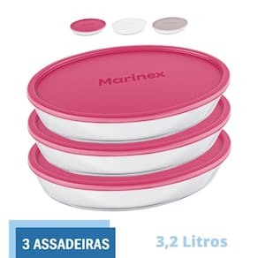 3 Assadeiras 3,2 Litros Oval com Tampa Marinex Nadir Figueiredo