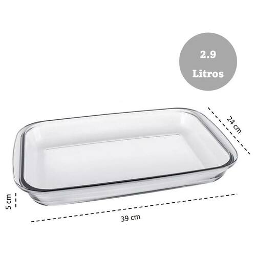 Assadeira Grande Clássica Retangular de Vidro Temperado2,9l.