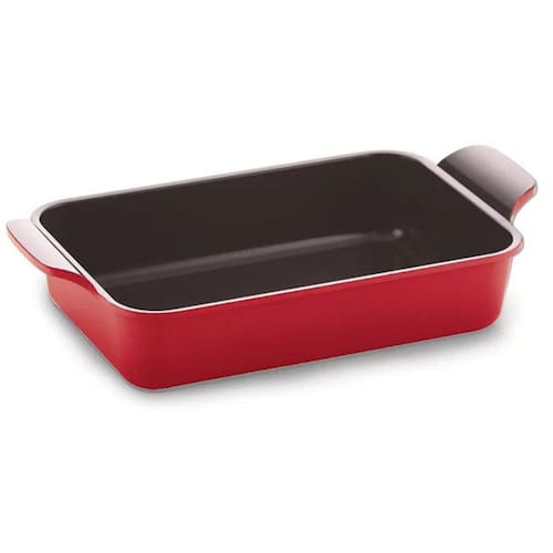 Para fazer suas melhores receitas de forno, a Assadeira Funda Neoflam vai te acompanhar. Com revestimento antiaderente e larga espessura, o cozimento se torna uniforme e rápido, proporcionando uma ótima e saborosa refeição. Além disso, seu design é muito elegante, na cor vermelha ela será destaque para a sua cozinha, levando um ar moderno. Produzida em alumínio, possui grande resistência e durabilidade.