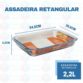 ASSADEIRA DE VIDRO RETANGULAR SEM TAMPA – 2,2L