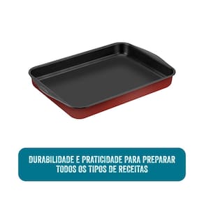 Durabilidade e praticidade para preparar todos os tipos de receita. A Assadeira Funda Retangular com Revestimento Antiaderente Rochedo Dura+ 32cm traz facilidade e resistência para o seu dia a dia, garantindo assados deliciosos sem grudar.