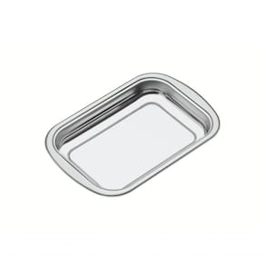 - Totalmente feita em aço inox, mantém suas características , preservando a beleza, a higiene e a durabilidade do material. - Acabamento em brilho. - Design moderno proporciona requinte ao compor a mesa. - Ideal para assar e servir. - Podem ser lavadas diariamente na máquina de lavar louças. Ean: 7891116020173