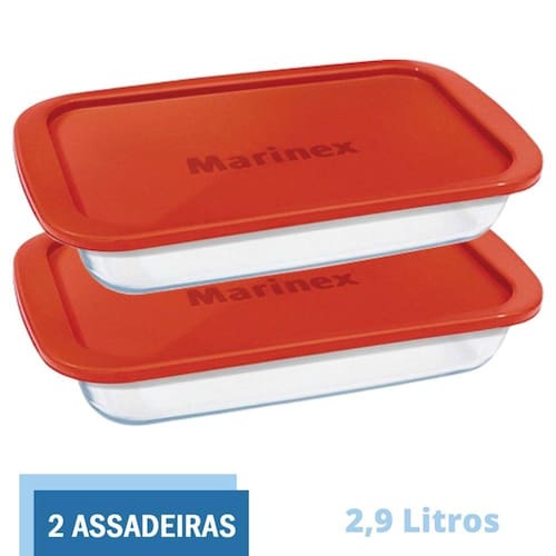 2 Assadeiras 2,9 Litros Retangular com Tampa Marinex Nadir Figueiredo
