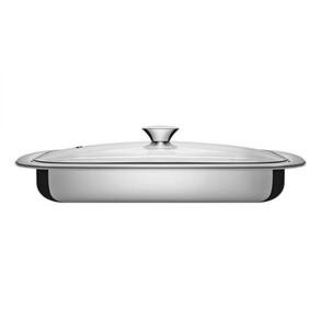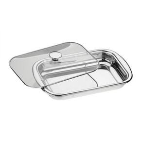 Peças feitas em aço inox, mantêm suas características originais, preservando a beleza, a higiene e a durabilidade do material. Acabamento em brilho. Design moderno proporciona requinte ao compor a mesa. Ideal para assar e servir. Podem ser lavadas diariamente na máquina de lavar louças. Com tampa de vidro transparente que permite a visualização dos alimentos.