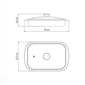 Com tampa de vidro transparente que permite a visualização dos alimentos.Características GeraisEAN137891116061244DUN1417891116061241NCM7323.93.00Peso Líquido1,0300 kg.Peso Bruto1,1650 kg.Metragem0,000001 m.Dimensões Embalagem (Compr. X Larg. X Alt.)350x 230x 55 mm.Dimensões Produto (Compr. X Larg. X Alt.)340x 222x 95 mm.Capacidade2,20 l.Espessura0,6 mm.Observações
