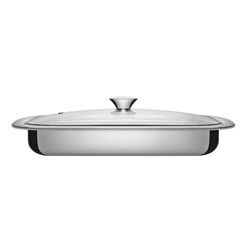 Assadeira Tramontina Cosmos Retangular em Aço Inox com Tampa de Vidro 34 cm 2,2 L