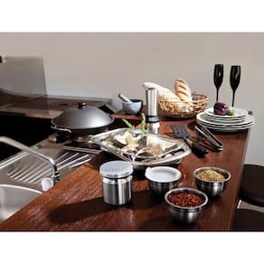 Peças feitas em aço inox, mantêm suas características , preservando a beleza, a higiene e a durabilidade do material.