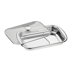 Impressione amigos e familiares com a Assadeira Tramontina Cosmos Retangular em Aço Inox com Tampa de Vidro 43 cm. Perfeita para assar e servir, encaixa-se em diferentes exigências que você encontrar na cozinha. Possui a alta durabilidade do aço inox e encanta com seu elegante acabamento em brilho, sendo uma ótima opção para ser servida à mesa. Acompanha tampa de vidro transparente que proporciona um preparo mais funcional, pois você consegue visualizar os alimentos.