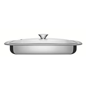 INFORMAÇÕES DA ASSADEIRA COSMOS RETANGULAR EM AÇO INOX COM TAMPA DE VIDRO 43 CM 4 LITROS - Peças feitas em aço inox, mantêm suas características autênticos, preservando a beleza, a higiene e a durabilidade do material. - Acabamento em brilho. - Design moderno proporciona requinte ao compor a mesa. - Ideal para assar e servir. - Podem ser lavadas diariamente na máquina de lavar louças. - Com tampa de vidro transparente que permite a visualização dos alimentos.
