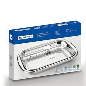 ASSADEIRA TRAMONTINA COSMOS RETANGULAR EM AÇO INOX COM TAMPA DE VIDRO 43 CM 4 L 61315434 Marca: Tramontina Modelo: Cosmos Retangular em Aço Inox com Tampa de Vidro 43 cm 4 Litros 61315/434