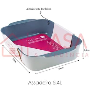 Assadeira Trevessa Hercules Retangular Branca Antiaderente Ceramico 35X24cm 5,4L Descrição: Com visual moderno, alegre e sofisticado, as Assadeiras da Linha Studio Hercules são perfeitas para quem gosta de praticidade aliada a beleza. Possuindo um design requintado e elegante, é peça ideal para ir do forno à mesa. Material de alumínio fundido e antiaderente cerâmico, pintura resistente a alta temperatura. A linha de Assadeiras Hercules é ideal para quem procura modernidade e qualidade para a cozinha. Venha conhecer a linha completa das assadeiras Hercules Todas as assadeiras Hercules possuem certificado INMETRO. Produto indicado para e doméstico. Características: - Capacidade: 5,4 Litros - Tamanho: 5,4 Litros 35Comprimento x 24Largura x 7,5Altura cm - Corpo Em Alumínio Fundido - Antiaderente Cerâmico - Pintura Resistente A Altas Temperaturas - Pode ir ao Forno e Lava Louças - Pode ir ao Fogão convencional e Fogão Halogênio - contém: 1 Assadeira retangular na cor Branca de 5,4 Litros 35x24cm. Especificações: Marca: Hercules; : 3 meses; ---- Aqui na Casa & Tendência você encontra os melhores utensílios domésticos e tudo que você precisa para sua cozinha ---- Marca: Não Informado