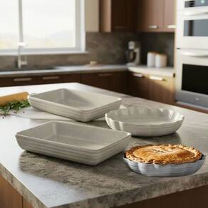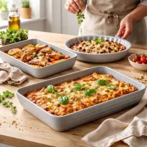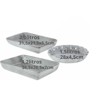 Assadeira Cinza Claro 36,5x26,5x7cm 4,2tsAssadeira Cinza Claro 31,5x21x5,5cm 2ltsAssadeira Redonda Cinza Claro D. 28,5X4,5cm 1,5ltsRecomendações: