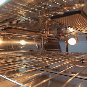 O Assador Bake Premium 04 conta com motor de 1/30 CV e consumo de gás de 190 g/h por queimador. Seus dois queimadores infravermelho possuem acendimento automático com luz piloto.