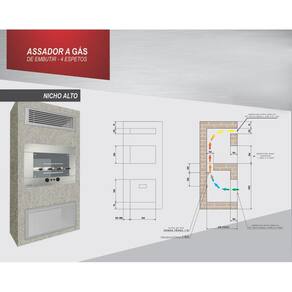 Descrição - Não produz fumaça; - 02 queimadores infravermelho; - Gabinete externo frontal MODULAR em aço inox AISI 304 escovado; - Bandeja coletora de gordura com frente de vidro; - Grade interna de apoio; - Controlador de queimador individual; - Válvula de segurança contra vazamento de gás; - Porta frontal de vidro temperado com sistema telescópico; - 04 Espetos rotativos com cabo TÉRMICO - Sendo 03 simples e 01 triplo; - Lâmpada interna; - Acendedor automático de fogo; - Espeto suportar 1,7 kg de carne.