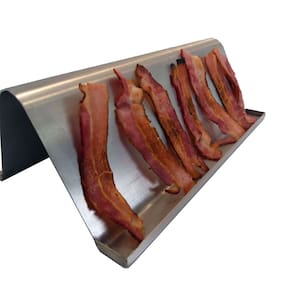 Assador De Bacon Para Hambúrguer e Churrasqueira Inox Escovado 304 O Assador de bacon da Cozinha Clube é ideal para ter aquela fatia de bacon perfeitamente assada e crocante. Basta apoiar a fatia de bacon sobre o assador e levalo a churrasqueira a gás ou carvão, na chapa, ou até mesmo ao forno e sem sujeira ou fumaça pois o assador possui o coletor de gordura evitando que a gordura caia ao fogo ou faça sujeira. Ideal para Hambúrguer e lanches perfeitos. Imagens meramente ilustrativas. Especificações Fabricado em Aço Inox 304 material nobre, não enferruja , Acabamento Escovado. Peso aproximado: 1300 gramas. Dimensões: Comp. 31 cm Larg. 20 cm Alt. 12 cm. Para fatias de mais que 30 cm de comprimento. Garantia Garantia: 3 messes contra defeitos de Fabricação. Marca: Cozinha clube