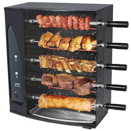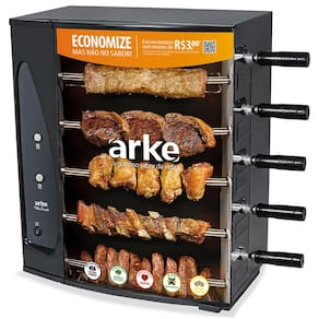 Seu churrasco vai ficar ainda mais saboroso com o Assador Elétrico Rotativo Arke Vitta Smart. Com ele você prepara diversos tipos de carnes em menos tempo e de maneira uniforme. O assador Smart conta com vidro curvo, acompanha cinco espetos e possui sistema rotativo que garante melhor distribuição da temperatura e assa de forma homogênea. È econômico, certificado pelo Inmetro e ecologicamente correto, pois não produz fumaça.