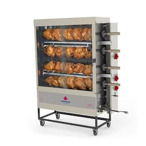 - Capacidade para 5 frangos inteiros de no máximo 2 Kg cada por espeto