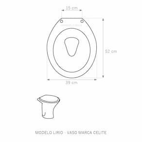 Assento Sanitário Almofadado (tampa de vaso) fabricado em polipropileno e polietileno especial. Resistente, durável, com excelente acabamento e design sofisticado. Assento macio, arco almofadado.Devido a sua composição este produto é totalmente impermeável e de fácil limpeza e higienização. Compatível com vasos sanitários de descarga convencional e também vasos com caixa acoplada. Acabamento brilhante no tampo e no assento. Fixação regulável para o perfeito encaixe na louça sanitária. Fácil limpeza, é higiênico e não acumula sujeira. O assento é acompanhado por parafusos para instalação e acabamentos. Embalagem dupla reforçada garante o recebimento do produto totalmente protegido. Especificações: - Dimensões da caixa: largura: 50,00cm. Altura: 4,00cm comprimento: 40,00cm - Acabamento: brilhante - Uso: este assento é adequado para uso na louça Celite modelo Lirio - Garantia: 3 meses - Itens inclusos: Tampa e assento, parafusos e embalagem duplamente reforçada. Instalação: posicione o produto, devidamente centralizado, em cima do vaso sanitário. Encaixe os parafusos e encaixe as porcas. Aperte até que o assento esteja firme no vaso. Manutenção: recomendamos a limpeza periódica com pano levemente umedecido com sabão neutro. Não usar esponjas abrasivas ou palha de aço nem qualquer tipo de produto químico.