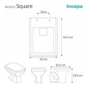 Especificações Modelo SQUARE Cor: branco Ferragem metálica em aço inox não oxida. Compatível com vasos com ou sem caixa acoplada.