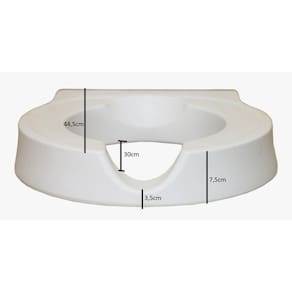 Elevador de assento de vaso sanitário.Tem grande abertura frontal para o uso ser mais higiênico e prático.Montagem prática feita do mesmo modo que coloca uma tampa de vaso normal. O assento é feito de material resistente e durável.O elevador de assento para vaso sanitário é indicado para residências, hospitais e clínicas.Ficha técnica: Produto: elevador de assento sanitário Marca: Alo OrtopédicoComposição: polietileno branco 00B55 Medidas do produto: 43cm comprimento, 40cm de largura e 7,5cm de alturaMedidas pacote: 50cm X 45cm X 9cm. Peso do produto: 1.1 kilos Suporta até 120 kilos Parafusos acompanham o item. A tampa do assento não está inclusa. O elevador de assento não se adapta a modelos cujo furo de montagem está em um nível diferente do resto do assento. Marca: Alo Ortopedicos