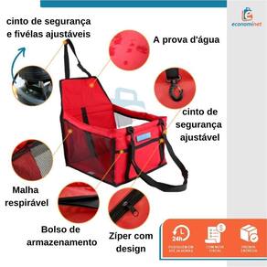 - Adaptável a maioria dos assentos de automóveis; - Indicado ao transporte de cães e gatos de até 6kg; - Possui cinto de segurança acoplado a cadeira; - Fácil instalação, fixado no próprio cinto de segurança e banco do carro; - Proporciona ao seu pet um passeio agradável e aos donos um transporte mais seguro; - Protege o assento do automóvel de sujeiras; - Dobrável e fácil de transportar; - Altura regulável.