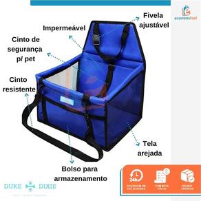 - Adaptável a maioria dos assentos de automóveis; - Indicado ao transporte de cães e gatos de até 6kg; - Possui cinto de segurança acoplado a cadeira; - Fácil instalação, fixado no próprio cinto de segurança e banco do carro; - Proporciona ao seu pet um passeio agradável e aos donos um transporte mais seguro; - Protege o assento do automóvel de sujeiras; - Dobrável e fácil de transportar; - Altura regulável.