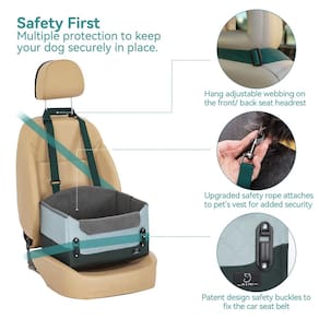 Assento de carro A4Pet para cães pequenos - Tamanho perfeito para cães pequenos: medindo 43 cm C x 30 cm L x 29 cm A, este assento de carro é ideal para cães pequenos com peso de até 11 kg, proporcionando a eles um local seguro e aconchegante durante passeios de carro. - Seguro e ajustável: possui fivelas patenteadas para fixar o cinto de segurança do seu carro e uma coleira de segurança ajustável para manter seu cão seguro no lugar. Inclui uma alça ajustável para fixação do encosto de cabeça. - Construção de alta qualidade: Feito de tecido Oxford durável, reforçado com pontos duplos para força extra. O forro de lã macia e o travesseiro garantem o máximo de conforto para o seu animal de estimação, enquanto os lençóis ocos cobertos com esponjas fornecem suporte adicional. - Montagem fácil e ajuste versátil: a configuração simples permite a instalação rápida na maioria dos carros, seja no banco dianteiro ou traseiro. O design dobrável garante fácil armazenamento e portabilidade quando não estiver em uso. - Elevado e confortável: projetado para fornecer duas posições elevadas, permitindo que seu animal de estimação veja confortavelmente pela janela, reduzindo a ansiedade de viagem e melhorando sua experiência de viagem. - Garantia de 1 ano: vem com uma garantia de 1 ano para tranquilidade, garantindo que você e seu animal de estimação desfrutem de muitas viagens seguras e confortáveis juntos.