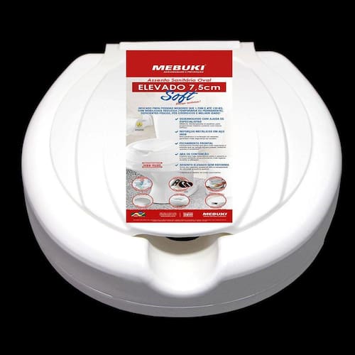 Assento De Vaso Elevado 7,5 cm Soft - Branco - Mebuki Assento De Vaso Elevado 7,5 cm Soft - Mebuki - Branco Assento sanitário elevado de 7,5 cm que facilita a utilização do vaso sanitário, sem requerer esforço físico. É ideal para pós-cirúrgicos, deficientes físicos e idosos. Recomendado para pessoas mais baixas que 1,70m. Suporta até 120 kg Características Principais: - Indicado para pós-cirúrgicos, deficientes físicos e idosos. - Foi desenvolvido, baseado em informações técnicas de: médicos, fisioterapeutas e usuários, para proporcionar conforto com menor esforço físico. - De fácil instalação: parafusos inquebráveis e ajustáveis a todos os vasos ovais convencionais. - Porcas e buchas cônicas fixam o assento, impedindo movimentos laterais. - Higiênico e fácil de limpar - Confeccionado com matéria-prima nova, atóxica e de procedência, o que garante melhor acabamento e maior durabilidade. - Dimensões: 39 x 44 x 7,5 cm Material: - Polietileno - Poliamida - Polipropileno - Alumínio - Aço Inox