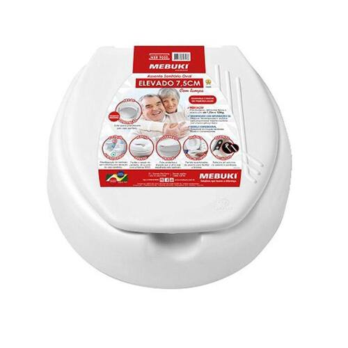 Os Assentos Sanitários Mebuki são confeccionados com matéria-prima nova, atóxica e de procedência, o que garante melhor acabamento e maior durabilidade.DESENVOLVIDO COM INFORMAÇÕES DE:-médico, fisioterapeutas e usuários, para proporcionar máximo conforto com menor esforço.RECOMENDAÇÕES:- Suporta até 120kg- Recomendado para pessoas com altura até 1,70m- Indicado para Pós-Cirúrgicos, Deficientes Físicos e Melhor Idade, por facilitar a utilização do vaso sanitário, Sem Muito Esforço Físico.DIFRENCIAIS:- Fácil Instalação: Instalação permite o uso imediato.- Economia: Evite o custo com alvenaria mão de obra e materiais .- Inovação Mebuki: Aba de contenção- Fechamento frontal- Fácil de limpar- Reforços metálicos- Padrão ABNTCARACTERÍSTICAS PRINCIPAIS:- Fechamento Frontal: A parte frontal fechada, transmite mais segurança e impede que o paciente fique com as pernas presas, provocando quedas e graves consequências e impede que tenha urina espalhada pelo banheiro.- Reforços Metálicos: Em inox, nas partes da fixação do assento não rasgam e nos parafusos de nylon, garantem a mais segura fixação. Adaptável em cadeira de rodas para banho.- Higiêncio: Fácil para limpar.- Levantamento Total: Permite o levantamento total do assento, mesmo com caixa acoplada.- Segurança: Não desliza sobre a louça em função dos anéis de vedação do sistema de fixação;INSTRUÇÕES DE LIMPEZA:Utilizar somente pano macio umedecido com sabão neutro. Não utilize produtos químicos ou esponjas abrasivas, pois danificam o produto.CARACTERÍSTICAS- Altura do Assento: 7,5cm- Assento: 44cm x 39cm x 7,5cm- Indicado para Vasos Sanitários Modelos Ovais- Formato: Oval- Tipo de Material: Polietileno- Peso do Produto: 1,2 Kg- Tipo de Material da Fixação: NylonACOMPANHA:- Assento Sanitário Especial Elevado Almofadado 7,5cm Branco Mebuki- Peças de Instalação