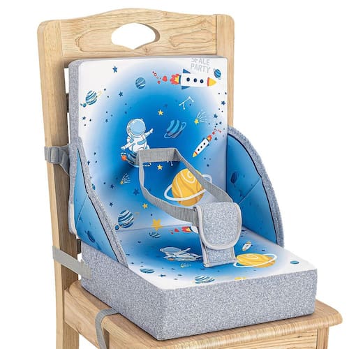 Assento elevatório infantil, assento elevatório infantil para mesa de jantar, assento elevatório de viagem com alças ajustáveis, assento elevatório de cozinha portátil para bebê (azul) -?👨?🚀 Assento elevatório confortável?A cadeira infantil para mesa de jantar é feita de poliéster de alta qualidade e uma esponja de alta densidade, que é confortável e não se deforma facilmente. Sua esponja macia de alta densidade pode trazer conforto às crianças. As cadeiras elevatórias infantis de mesa Monniebaby ajudam as crianças a desenvolver hábitos alimentares adequados e saudáveis -?🚀 Fácil de limpar?Se a comida cair acidentalmente na almofada elevatória, limpe-a com um pano. Projetado com um zíper para fácil remoção e limpeza. A capa também é lavável na máquina, o que economiza muito tempo na limpeza para que você possa se divertir mais com seus filhos. -?🛸 Fácil de ajustar?O assento elevatório tem 12,60 x 14,57 x 16,34 polegadas. Existem alças ajustáveis para evitar que o assento elevatório deslize para frente, para a esquerda ou para a direita. O assento elevatório infantil se encaixa na maioria das cadeiras altas para que as crianças possam comer com segurança. -?🛰? Leve e portátil?O assento elevatório é leve. É fácil de transportar devido ao design dobrável. Ele não só pode ser utilizado em casa para comer, mas também como uma almofada portátil de cadeira alta para sair para viajar, restaurantes e outras áreas públicas. -?? Feito para seu doce?O assento elevatório pode dar ao seu bebê a mesma oportunidade de comer com adultos, para que as crianças e suas famílias possam desfrutar de boas refeições em família. Também é adequado para refeições, entretenimento e viagens infantis em ambientes fechados e ao ar livre.