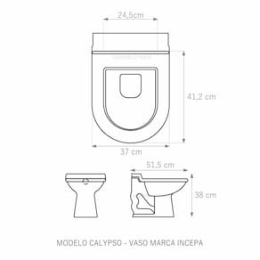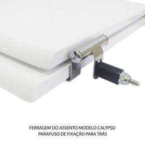 Assento Sanitário tampa de vaso fabricado em madeira MDF com pintura laqueada, com proteção raios UV, que garante excelente acabamento e durabilidade. Compatível com vasos bacias/louças sanitários com ou sem caixa acoplada. Tem calços de PVC instalados na tampa e no assento para proporcionar estabilidade ao uso, pois distribui o peso uniformemente sobre a louça sanitária. Montagem simples e fácil. Possui ferragem em alumínio anodizado que não enferruja/oxida e oferece muita resistência. O assento é acompanhado por parafusos para instalação. Embalagem dupla reforçada garante o recebimento do produto totalmente protegido. Especificações: - Dimensões da caixa: largura: 49,50cm. Altura: 4,00cm comprimento: 39,50cm - Peso do produto: 1,98kg - Acabamento: brilhante - Uso: este assento é adequado para uso na louça Incepa modelo Calypso - Garantia: 3 meses - Itens inclusos: Tampa e assento em MDF com calços de PVC, ferragem inoxidável, embalagem duplamente reforçada. Contém todos os parafusos e encaixes para instalação, sendo necessária somente uma chave de fenda para instalar o produto na louça sanitária. Instalação: posicione o produto, devidamente centralizado, em cima do vaso sanitário. Sem desmontar a ferragem, insira as buchas de borracha dentro dos furos da bacia sanitária. Encaixe os parafusos e posicione as porcas. Utilizando uma chave de fenda, aperte o parafuso no sentido horário até que o assento esteja firme e fixo no vaso. Manutenção: recomendamos a limpeza periódica com pano levemente umedecido com sabão neutro. Não usar esponjas abrasivas ou palha de aço nem qualquer tipo de produto químico.