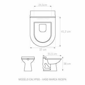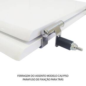 Assento Sanitário tampa de vaso fabricado em madeira MDF com pintura laqueada, com proteção raios UV, que garante excelente acabamento e durabilidade. Compatível com vasos bacias/louças sanitários com ou sem caixa acoplada. Tem calços de PVC instalados na tampa e no assento para proporcionar estabilidade ao uso, pois distribui o peso uniformemente sobre a louça sanitária. Montagem simples e fácil. Possui ferragem em alumínio anodizado que não enferruja/oxida e oferece muita resistência. O assento é acompanhado por parafusos para instalação. Embalagem dupla reforçada garante o recebimento do produto totalmente protegido. Especificações: - Dimensões da caixa: largura: 49,50cm. Altura: 4,00cm comprimento: 39,50cm - Peso do produto: 1,98kg - Acabamento: brilhante - Uso: este assento é adequado para uso na louça Incepa modelo Calypso - : 3 meses - Itens inclusos: Tampa e assento em MDF com calços de PVC, ferragem inoxidável, embalagem duplamente reforçada. Contém todos os parafusos e encaixes para instalação, sendo necessária somente uma chave de fenda para instalar o produto na louça sanitária. Instalação: posicione o produto, devidamente centralizado, em cima do vaso sanitário. Sem desmontar a ferragem, insira as buchas de borracha dentro dos furos da bacia sanitária. Encaixe os parafusos e posicione as porcas. Utilizando uma chave de fenda, aperte o parafuso no sentido horário até que o assento esteja firme e fixo no vaso. Manutenção: recomendamos a limpeza periódica com pano levemente umedecido com sabão neutro. Não usar esponjas abrasivas ou palha de aço nem qualquer tipo de produto químico. Marca: Não Informado Ean: 7891467005829