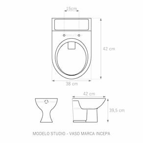 Assento Sanitário tampa de vaso fabricado em madeira MDF com pintura laqueada, com proteção raios UV, que garante excelente acabamento e durabilidade. Compatível com vasos bacias/louças sanitários com ou sem caixa acoplada. Tem calços de PVC instalados na tampa e no assento para proporcionar estabilidade ao uso, pois distribui o peso uniformemente sobre a louça sanitária. Montagem simples e fácil. Possui ferragem em alumínio anodizado que não enferruja/oxida e oferece muita resistência. O assento é acompanhado por parafusos para instalação. Embalagem dupla reforçada garante o recebimento do produto totalmente protegido. Especificações: - Dimensões da caixa: largura: 51,50cm. Altura: 4,00cm comprimento: 38,00cm - Peso do produto: 1,98kg - Acabamento: brilhante - Uso: este assento é adequado para uso na louça Incepa modelo Studio - Garantia: 3 meses - Itens inclusos: Tampa e assento com calços de PVC, ferragem inoxidável, embalagem duplamente reforçada. Contém todos os parafusos e encaixes para instalação, sendo necessária somente uma chave de fenda para instalar o produto na louça sanitária. Instalação:posicione o produto, devidamente centralizado, em cima do vaso sanitário. Sem desmontar a ferragem, insira as buchas de borracha dentro dos furos da bacia sanitária. Utilizando uma chave de fenda, aperte o parafuso no sentido horário até que o assento esteja firme no vaso. Manutenção: recomendamos a limpeza periódica com pano levemente umedecido com sabão neutro. Não usar esponjas abrasivas ou palha de aço nem qualquer tipo de produto químico.