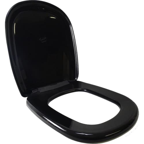 Características - Assento em polipropileno - Compatibilidade com as linhas Dona Beja PP e Sabatini PP - Cor: preta - Fixador ajustável - Tampa envolvente - Assento higiênico - Confortável - Superfície brilhante - Fixador anti deslizante