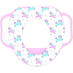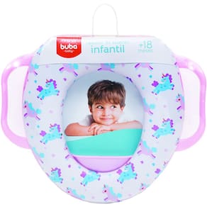 Principais características: - Redutor de assento infantil Unicórnio Buba - Auxilia na fase de transição da fralda para o vaso sanitário - Confeccionado em plástico rígido atóxico - Impermeável, leve e fácil de manusear graças às alças laterais - Composto por assento de almofada e base adaptadora com alças laterais - Assento infantil com enchimento de espuma para maior conforto - Fácil de limpar - Composição: Polipropileno, Poliuretano, Policloreto de vinila PVC - Medidas aproximadas AxLxP : 36cm x 29cm x 5cm