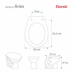 Assento Sanitário Poliéster Aries Branco para vaso Eternit é a escolha perfeita para seu banheiro trazendo beleza e praticidade. Este Assento Sanitário termofixo é fabricado em Resina de Poliéster o que lhe garante total impermeabilidade. Acabamento brilhante e ferragem metálica que não oxida. É compatível para uso em vaso sanitário com ou sem caixa acoplada. É muito rápido e fácil instalar, acompanha os parafusos de fixação e basta apenas uma chave de fenda para instalar no vaso. Entrega garantida e rastreada com embalagem dupla reforçada. Cor: Branco. Distância entre meio dos furos da louça: 15cm. Acabamento: brilhante. Dicas: Itens inclusos: produto completo, assento e tampa em resina de poliéster e ferragem. Limpeza: recomenda-se a limpeza com água e sabão neutro e não utilizar produtos abrasivos ou químicos. Instalação: Sem desmontar o produto, posicione sobre os furos do vaso sanitário e encaixe os dois parafusos com as borrachas pretas dentro dos furos do mesmo. Aperte com a chave de fenda no sentido horário até ficar firme. Importante: este anúncio inclui somente o produto conforme descrição acima. Todos os elementos decorativos das fotos não estão inclusos. Observação: O código 6LPF gravado na bacia sanitária corresponde ao fluxo de água em litros de uma descarga e não indica o modelo da mesma.