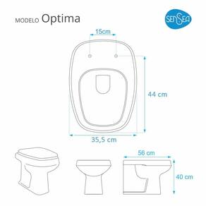 Assento Sanitário Poliéster Optima Branco para vaso Sensea 6lpf a escolha perfeita para seu banheiro. O Assento Sanitário Poliéster é considerado o melhor tipo de assentos sanitários do mercado pelo seu acabamento impecável e excelente durabilidade. Este assento de vaso sanitário é produzido em resina maciça de poliéster. O poliéster é uma resina semelhante ao acrílico, só que mais robusta / resistente. Por isso, é totalmente impermeável, pode ser lavado com água à vontade. Fácil de limpar. Não acumula sujeira. Compatível com o vaso sanitário Sensea modelo Optima com ou sem caixa acoplada (é compatível com os dois tipos de vasos). Acompanha parafusos para instalação no vaso. Fácil de instalar, basta apenas uma chave de fenda e fica pronto em menos de um minuto. O encaixe do assento sanitário no vaso é feito por uma ferragem metálica que não oxida e não enferruja. Dicas: Limpeza: recomenda-se a limpeza do assento sanitário poliéster com água e sabão neutro, não utilizar produtos abrasivos. Material: maciço em resina de poliéster. Ferragens metálicas em alumínio anodizado (mesmo material utilizado em box de banheiro, não oxida e não enferruja) Peso: 2,7kg Instalação: sem desmontar o produto, posicione o assento sobre o vaso sanitário. Então encaixe os parafusos com a borracha preta dentro dos furos do vaso, e depois aperte com uma chave de fenda até ficar bem firme no vaso. Ao apertar com a chave de fenda, a porca irá subir e pressionar a borrachinha preta, que irá prender por pressão nos furos do vaso. Importante: este anúncio inclui somente um assento sanitário conforme descrito acima. Todos os elementos decorativos das fotos não acompanham o produto.