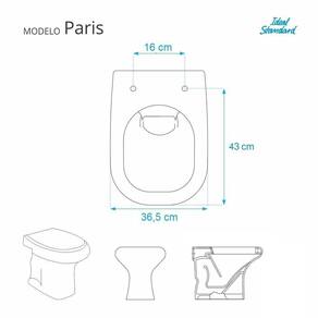 Assento Sanitário Poliéster Paris Branco para vaso Ideal Standard traz beleza e praticidade ao seu banheiro. Esta Tampa de Vaso é fabricada 100% em Resina Virgem de Poliéster. É impermeável, ultra resistente, tem acabamento brilhante e ferragem metálica que não enferruja. É compatível para uso em vaso sanitário com ou sem caixa acoplada. Instalação rápida e fácil, acompanha parafusos de fixação e basta apenas uma chave de fenda para instalar no vaso. Entrega garantida e rastreada com embalagem dupla reforçada. Cor: Branco. Distância entre os parafusos: 15cm. Acabamento: brilhante. Dicas: Itens inclusos: produto completo, assento e tampa em resina de poliéster e ferragem. Limpeza: recomenda-se a limpeza com água e sabão neutro e não utilizar produtos abrasivos ou químicos. Instalação: Sem desmontar o produto, posicione os dois parafusos com borrachas pretas sobre os buracos da bacia sanitária e os encaixe dentro deles. Aperte com a chave de fenda no sentido horário até ficar firme. Importante: este anúncio inclui somente o produto conforme descrição acima. Todos os elementos decorativos das fotos não estão inclusos. Observação: O código 6LPF gravado na bacia sanitária corresponde ao fluxo de água em litros de uma descarga e não indica o modelo da mesma.