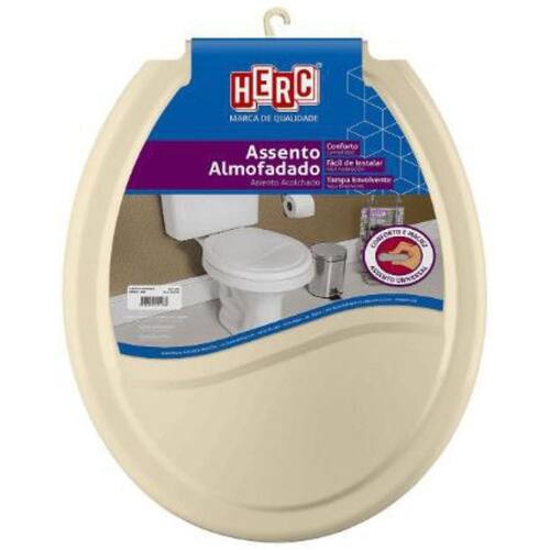 O Assento Sanitário Almofadado Bege Herc é utilizado em louças convencionais. Produto fabricado em EVA com preenchimento em poliuretano e acabamento brilhante oferecendo mais beleza ao seu banheiro. Assento almofadado super leve, resistente e macio. Possui fácil instalação e parafusos que possibilitam ajuste de distância para fixação a louça. Características Gerais do Produto: Composição: Conjunto de fixação / Assento / Tampa Capacidade: Até 130 kg Cor Predominante: Bege Acabamento: Brilhante Material: EVA / Poliuretano Modelo: Almofadado - Bege EAN: 7898059551269 Marca: Herc Comprimento: 44,95 cm Largura: 37,67cm Altura: 4,7cm Acompanha o produto: 01 - Assento Sanitário Almofadado Bege - Herc Ean: 7898668360122